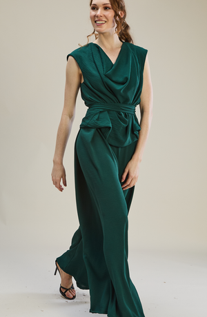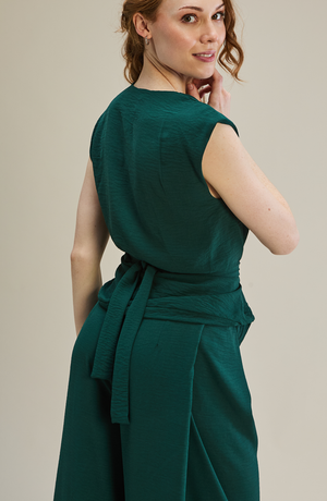 These pants have a fitted waistband and are tailored in a wide-leg silhouette with sharp pleats and a centre back zip closure. Wear them with our matching Boh top or a half-tucked sweater.