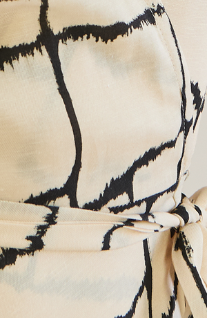 Wraparound design, ties at the waist for an adjustable fit