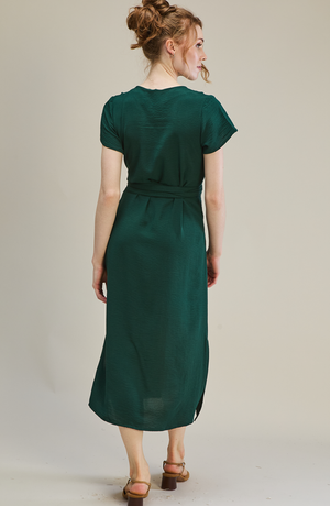 Our Beck Dress with sleeves. This Beth Dress has a comfortable loose fit cut with belts on the sides that wraps around the body. It also features side slits and sleeves. Wear yours with a pair of sneakers.
