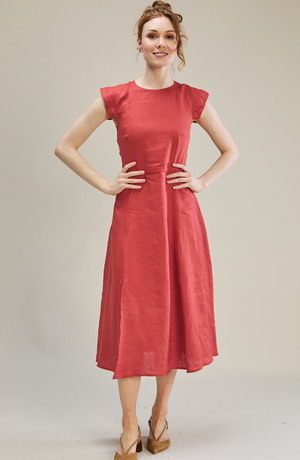 Cut to be fitted at the bust and waist, slightly loose at the hip